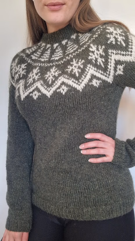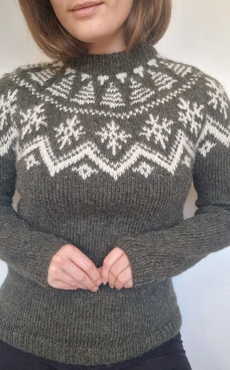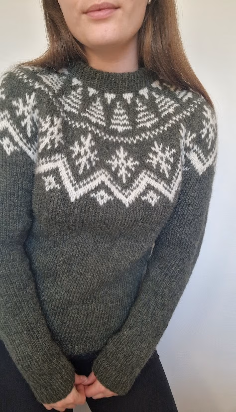Desember munstur er fyrsta jólamunstrið sem ég hannaði. Ég ákvað hinsvegar að byrja á Sitkagreni og Rúdólf þar sem að ég hélt að þetta munstur myndi ekki koma nógu vel út. Ég er mjög ánægð með hvernin Desember lopapeysan kom út.
