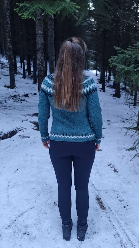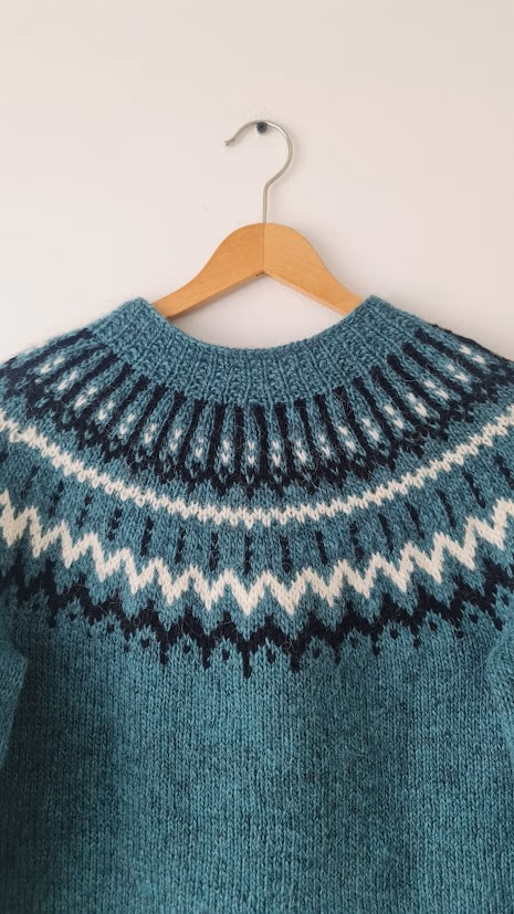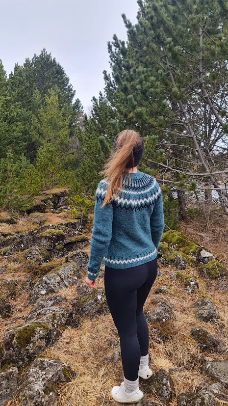 Peysan er prjónuð neðan frá og upp, en fyrir þá sem eru vanir að prjóna frá hálsmáli, þá er auðvelt að fylgja uppskriftinni öfuga leið, og taka saman þar sem stendur auka út.