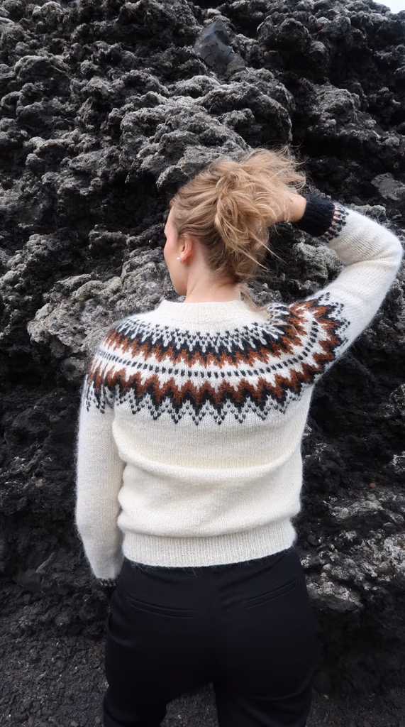 Mistur peysa er prjónuð neðan frá og upp, en fyrir þá sem eru vanir að prjóna frá hálsmáli, þá er auðvelt að fylgja uppskriftinni öfuga leið.