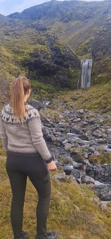 Peysan er prjónuð neðan frá og upp, en fyrir þá sem eru vanir að prjóna frá hálsmáli, þá er auðvelt að fylgja uppskriftinni öfuga leið, og taka saman þar sem stendur auka út.