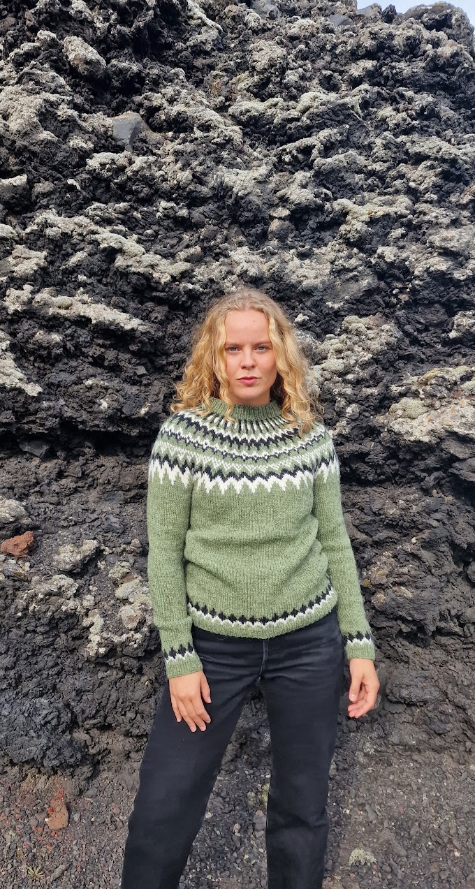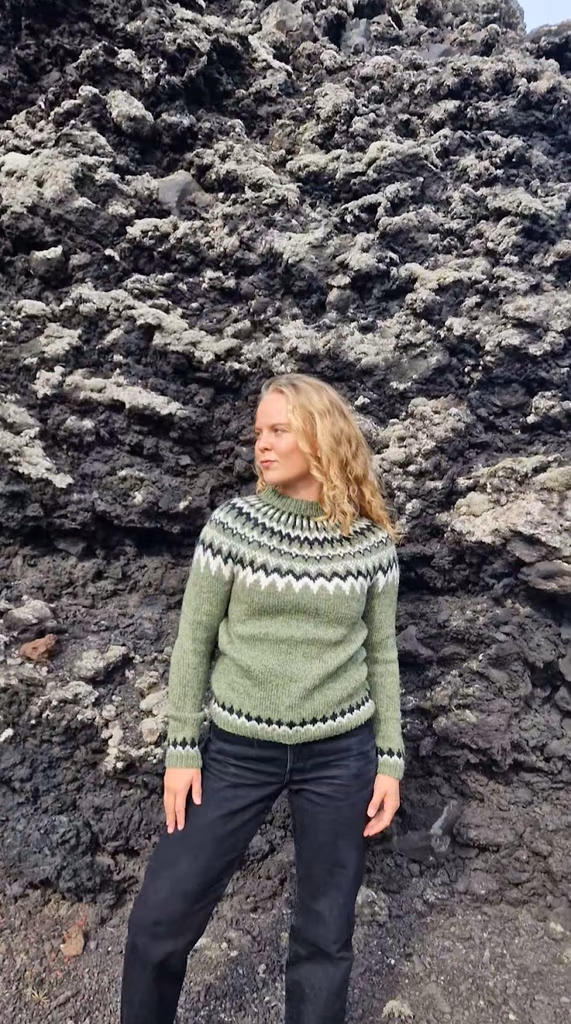 Peysan er prjónuð neðan frá og upp, en fyrir þá sem eru vanir að prjóna frá hálsmáli, þá er auðvelt að fylgja uppskriftinni öfuga leið, og taka saman þar sem stendur auka út.